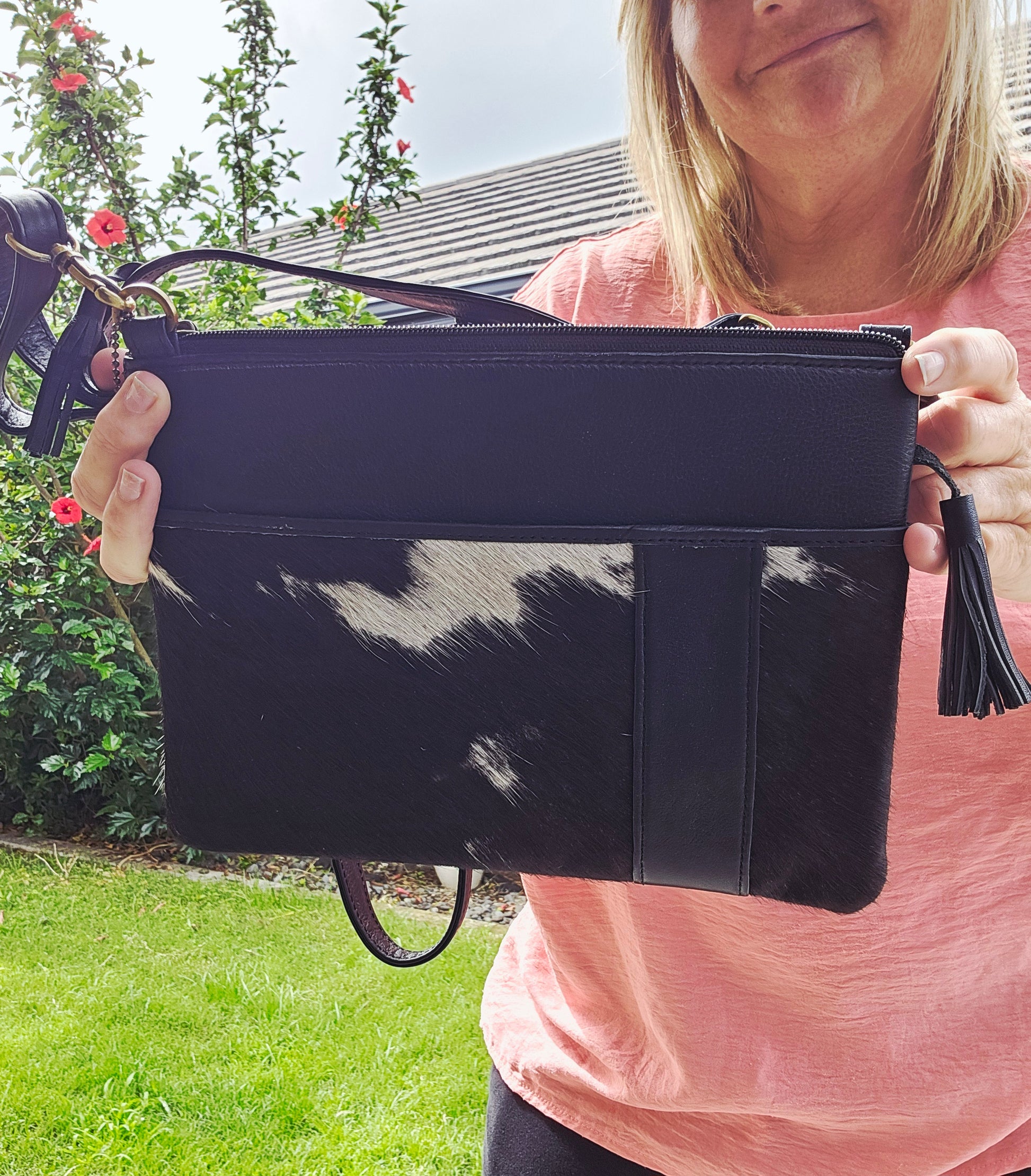 • genuine leather with ‘hairon’ front panel